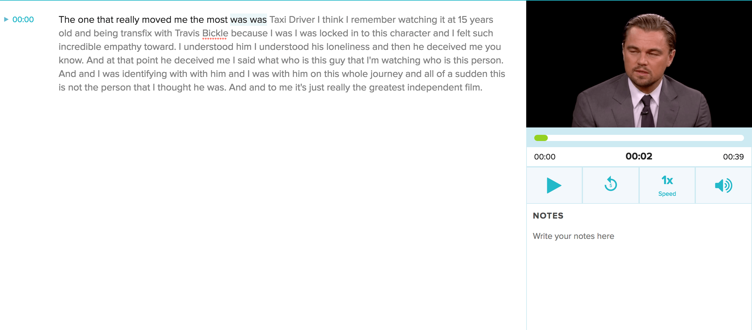 Sifting through hours and hours of audio and video files searching for the mention of a topic or keyword leads to wasted time. By providing a tool that allows for quick and accurate transcription, users are able to quickly and easily search for keywords or topics they are searching for. After speaking with journalists and podcasters about their pain points in the research process the primary issue was searching through audio/video interviews or recordings looking for a topic. Providing accurate transcript quickly allows for the user to save time, and focus on their work.